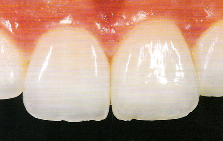 передние зубы до установки керамических виниров фотоКерамические виниры – накладки на передние зубы, которые изготавливаются из прочной керамики в зуботехнической лаборатории. С помощью виниров можно исправить кривое положение зубов, их длину, цвет, форму. Перед их изготовлением зубы подготавливаются особым способом: зубы обтачиваются очень щадяще с передней, режущей и боковых поверхностей (не более 1.5мм). Далее зубы закрываются временными винирами на весь срок изготовления постоянных керамических виниров, что занимает около недели. керамические виниры на передних зубах фотоВ следующий визит керамические виниры примеряются, и, в случае удовлетворенности пациента и доктора, фиксируются на зубы специальным композитным светоотверждающим цементом. Результат получается абсолютно натуральным и неотличимым от настоящих зубов, а их прочность позволяет пациенту пользоваться ими как обычными зубами. Срок службы такой реставрации составляет более 15-ти лет!