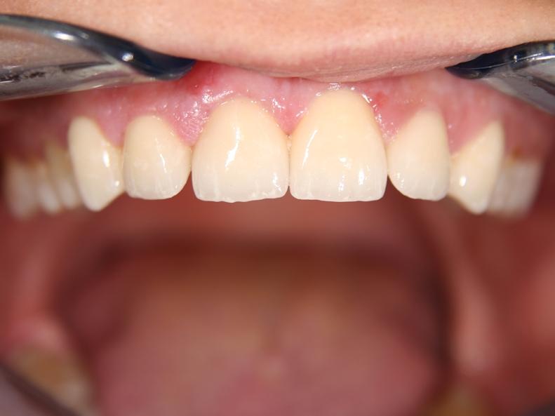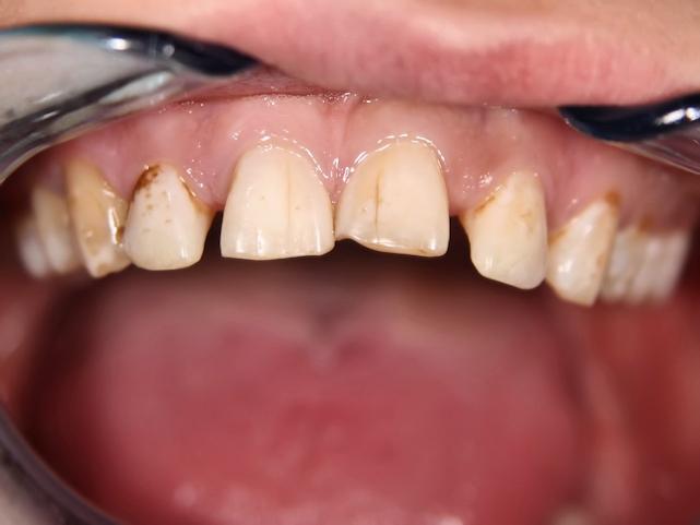 Пациент обратился с жалобой на плохую эстетику верхних передних зубов. На консультации было принято решение изготовить керамические виниры для закрытия щелей между зубами и изменения формы и положения передних зубов.