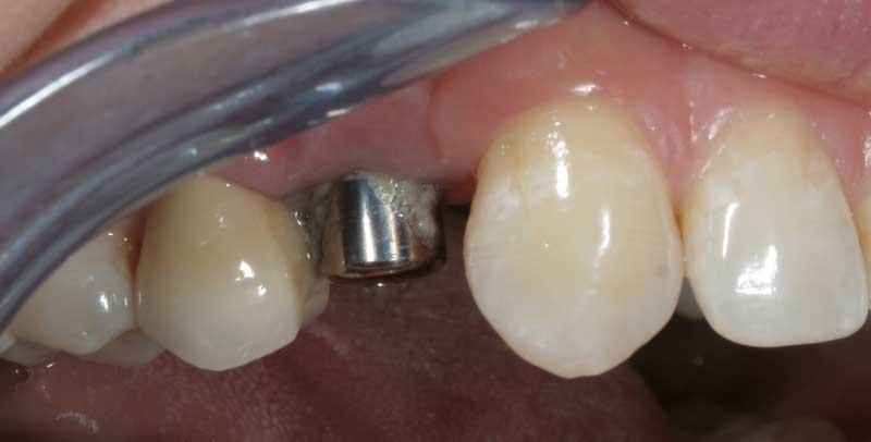 Пациенту был установлен имплантат в эстетически важной зоне. Пожеланием пациента было максимальная схожесть коронки с соседними зубами.