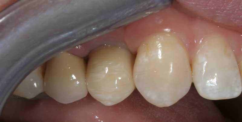 Наша зуботехническая лаборатория изготовила циркониевую коронку с имитацией меловидных пятен и других особенностей структуры и цвета соседних зубов. Все требования пациента к эстетическим параметрам коронки полностью удовлетворены. Пациент остался очень доволен результатом проведенного лечения.