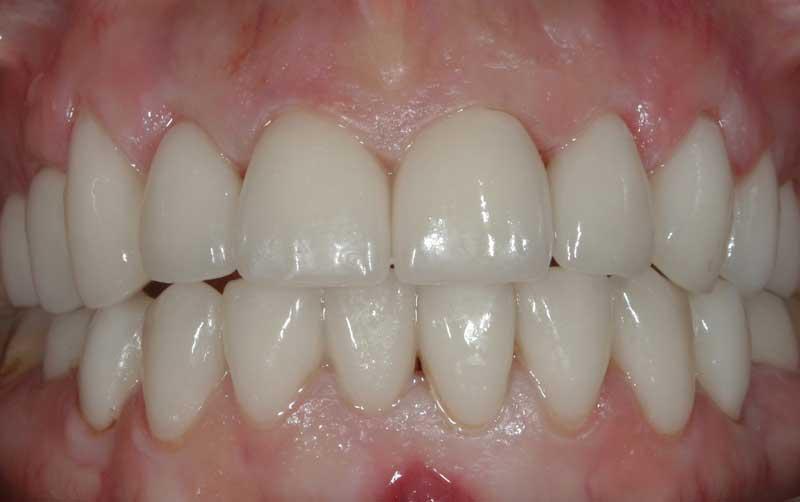 Готовые циркониевые коронки зафиксированы на зубы. Все эстетические проблемы с передними зубами решены. Пациент остался доволен.